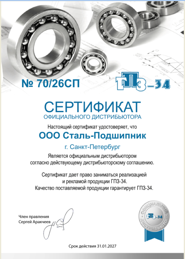 Производитель подшипников с неполным циклом ГПЗ-34 с 2009 г.