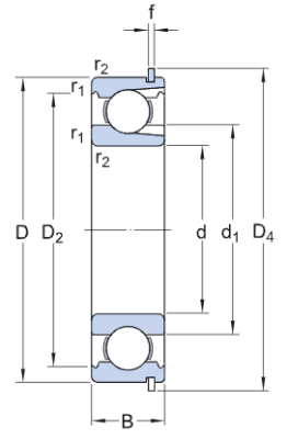 D3 (мм) - Диаметр канавки под стопорное кольцо на наружном кольце
