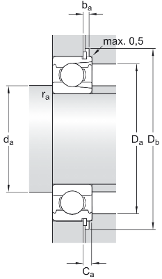 Ca (мм) - Расстояние от торца наружного кольца до заднего торца стопорного кольца (max)