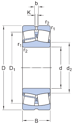 b/b1 (мм) - Ширина кольцевой смазочной канавки на наружном кольце