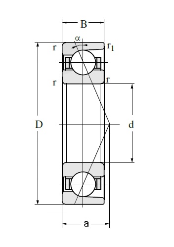 По скоростным характеристикам радиально-упорный подшипник 7305 BM/P6 не уступает радиальному однорядному. Увеличение угла контакта приводит к снижению допускаемых частот вращения и увеличению воспринимаемой подшипником односторонней осевой нагрузки."